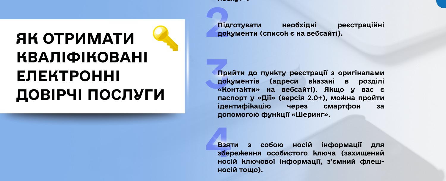 Головне управління ДПС у Полтавській області повідомляє, що для отримання кваліфікованих електронних довірчих послуг потрібно: