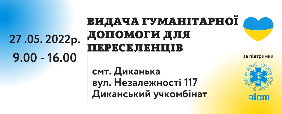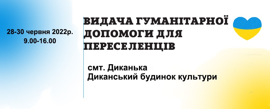 28-30 червня родини переселенців, що зареєстровані на території Диканської громади, зможуть отримати продуктовий набір на сім'ю (1 сім'я-1набір).