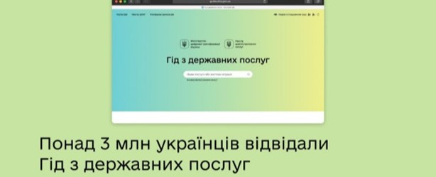 Понад 3 млн українців відвідали Гід з державних послуг. Цієї цифри Гід досяг менше ніж за рік. Щодня команда Мінцифри доповнює та оновлює Гід у режимі реального часу для того, щоб взаємодія держави та громадян була комфортнішою і простішою